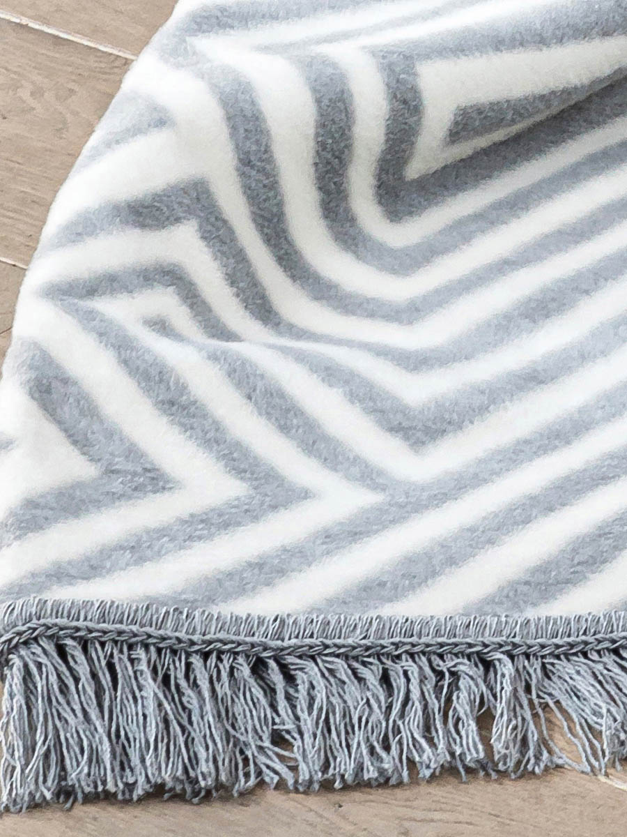 Wykończony dekoracyjnymi frędzlami.
