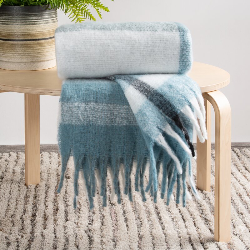 Koc MOHER wykonany jest z miękkiej i puszystej w dotyku moherowej tkaniny. Koc w paski, zakończony z dwóch stron miękkimi frędzlami, doda charakteru każdej sypialni.  Rozmiar 130×170 cm sprawia, że przyjemnie jest się nim otulić i spędzić wieczór pod miękkim kocem, znakomicie nadaje się również jako narzuta na łóżko. Sprawdzi się również na tarasie, balkonie, a także w młodzieżowym pokoju. A może podarujesz go komuś bliskiemu, komu potrzebna jest odrobina ciepła w sypialni? Miękkie i miłe w dotyku koce i pledy to znakomite okrycie na chłodniejsze  wieczory.