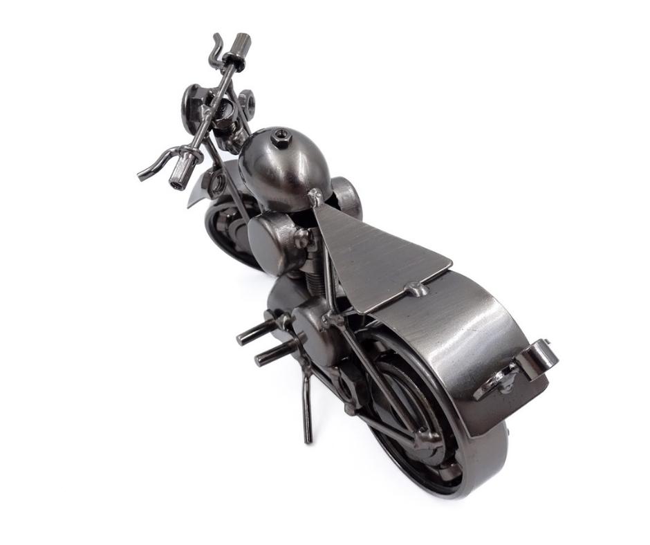 Wykonany z metalowych elementów połączonych spawami. Całość tworzy bardzo ciekawy model motocykla.