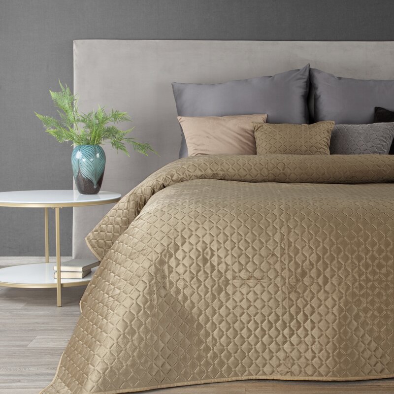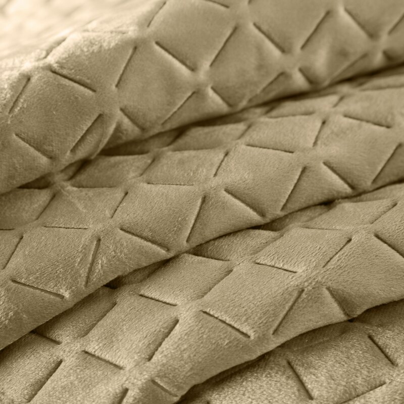 Miękka i przyjemna w dotyku narzuta. Wykonana z weluru pikowanego w drobny wzór karo. Pikowanie wykonane metodą bezszwowego zgrzewu Hot-press.