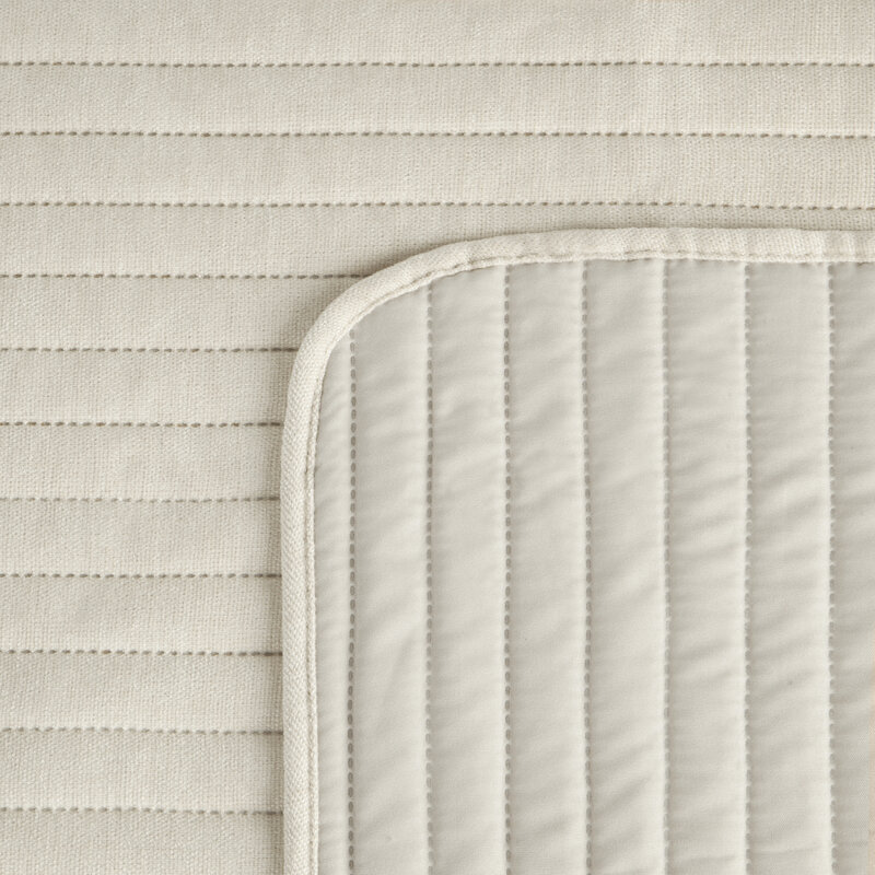 Miękka i przyjemna w dotyku narzuta. Wykonana z tkaniny o splocie płóciennym. Zdobiona przeszyciami wykonanymi techniką Termo-Stik.