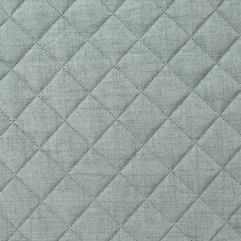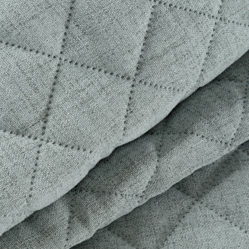 Narzuta jest dwustronna. Prawa strona to właśnie tkanina imitująca gruby splot płótna. Lewa to gładki, matowy materiał, kolorem dobrany do głównego materiału.
