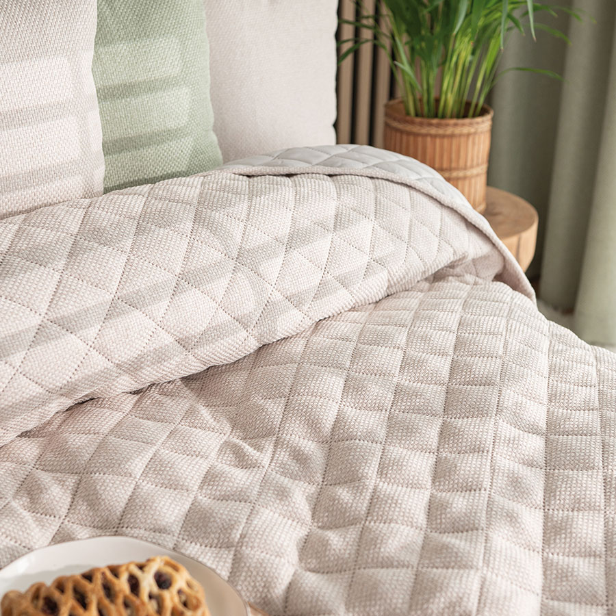 Narzuta Molly to elegancki dodatek, który wniesie do każdego wnętrza przyjemny i delikatny styl. Narzuta wykonana z tkaniny o ciekawym splocie, przeszyta pikowaniem w kształcie karo.