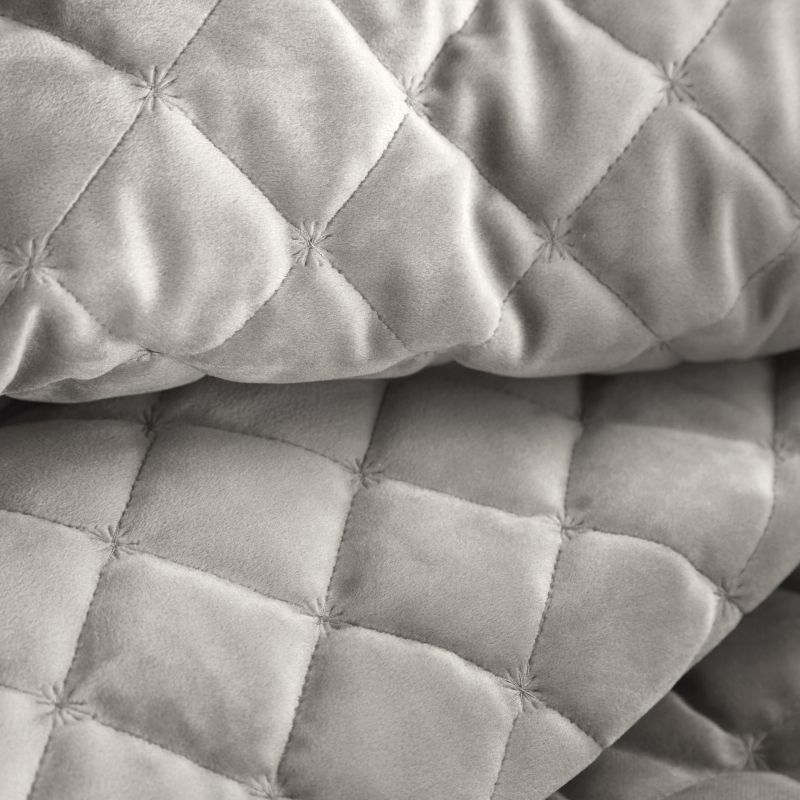 Miękka i przyjemna w dotyku narzuta. Wykonana z weluru pikowanego w drobny wzór karo. Pikowanie wykonane przeszyciem nicią.