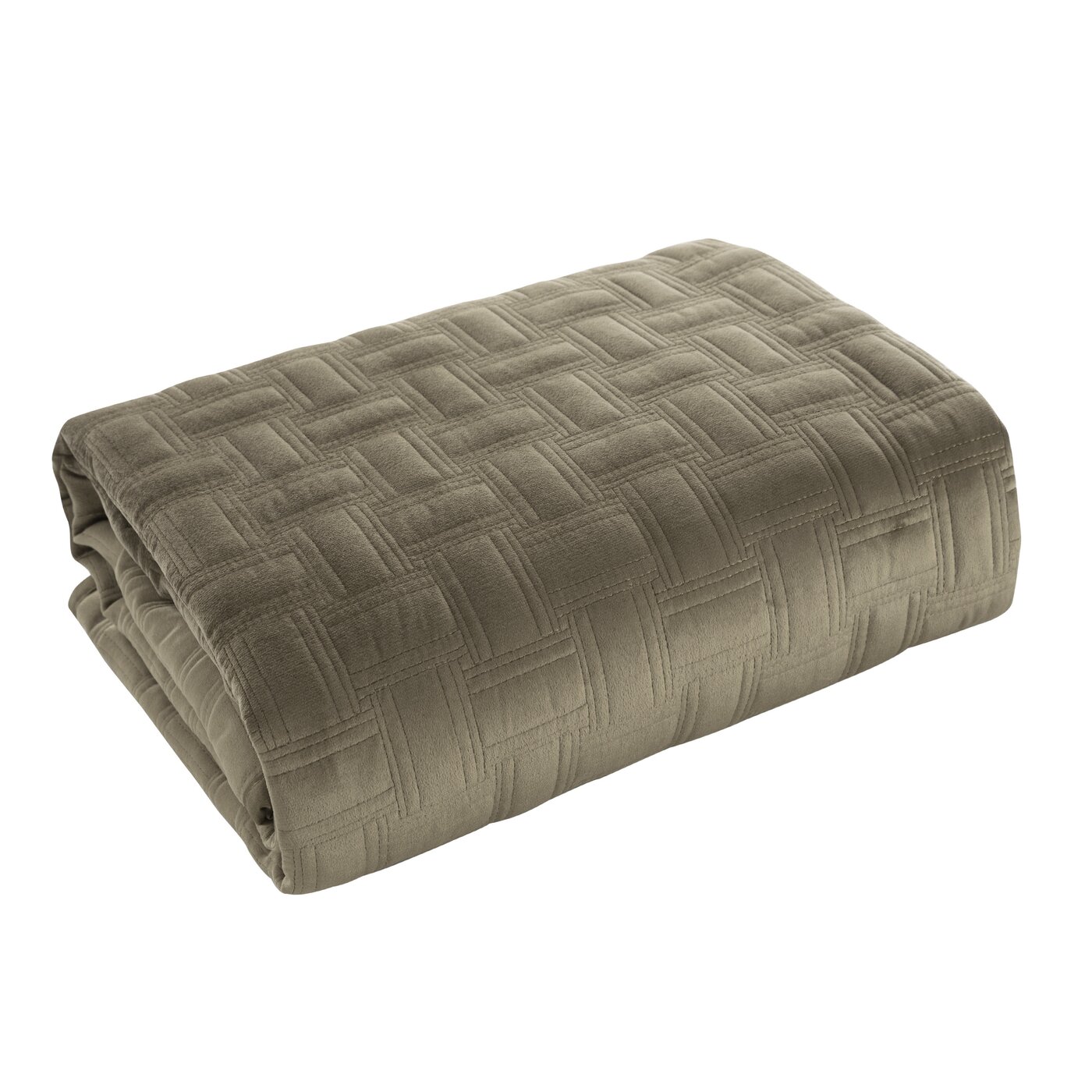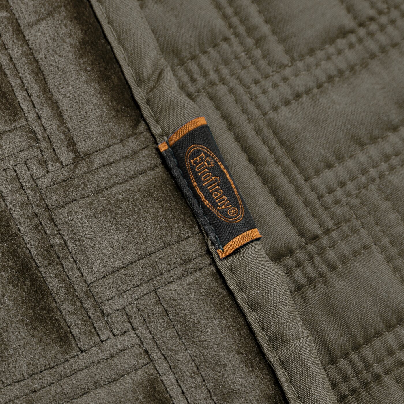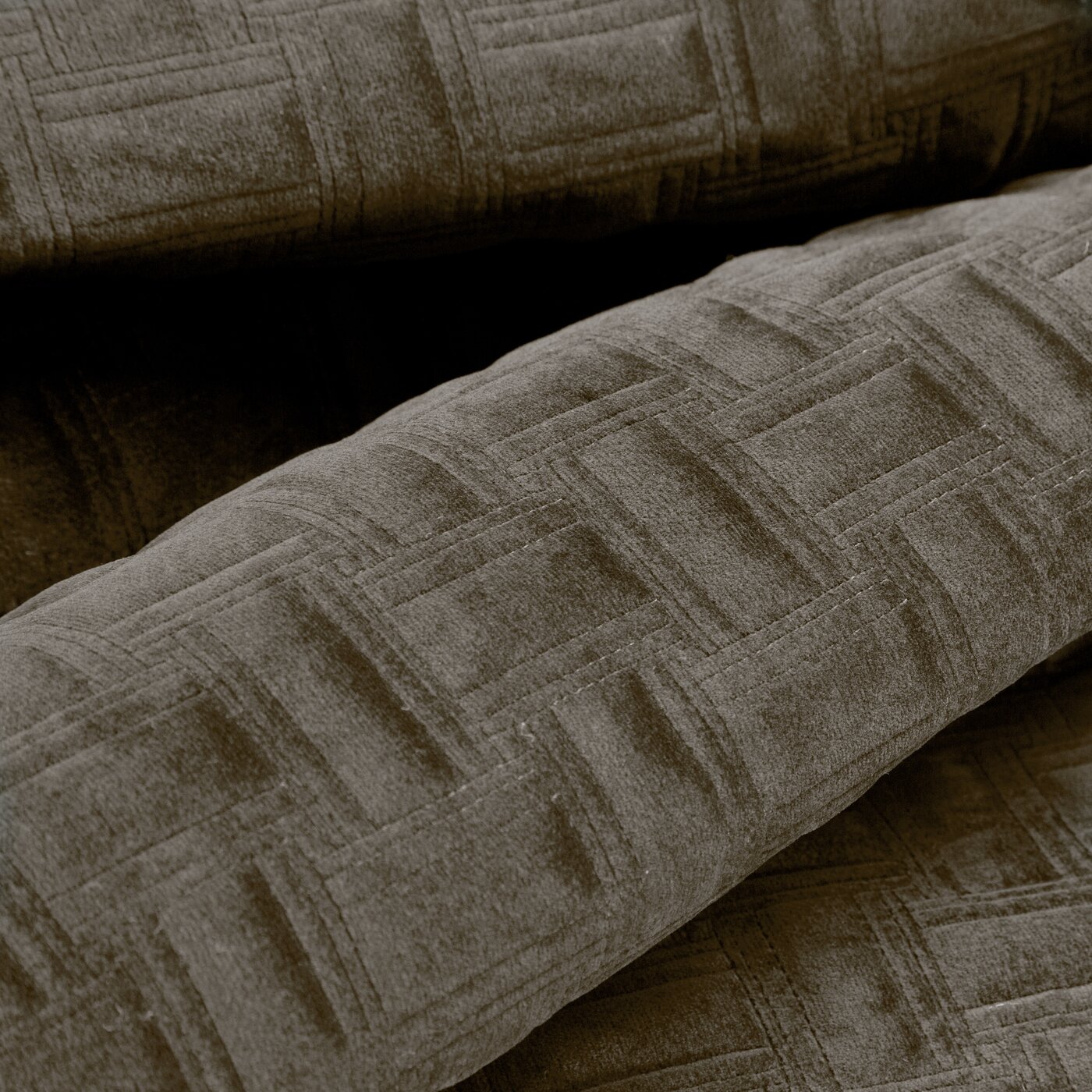 Narzuta pikowana w drobny geometryczny wzór metodą tradycyjnego szycia ma modną, nowoczesną formę.