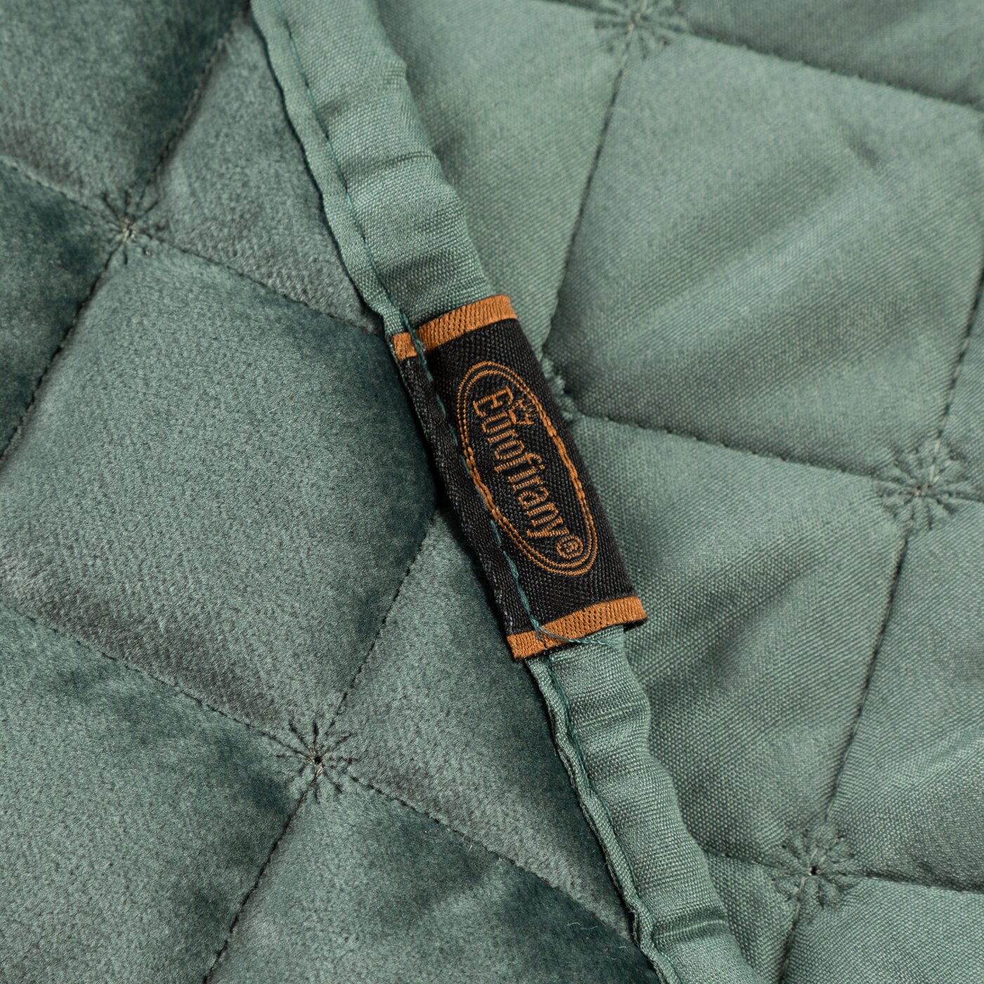 Elegancka narzuta z miękkiego i delikatnego w dotyku welwetu o subtelnym połysku. Narzuta jest pikowaną metodą tradycyjnego szycia. Narzuta pikowana w drobne romby, a te łączą się ze sobą haftem w postaci małych gwiazdek.