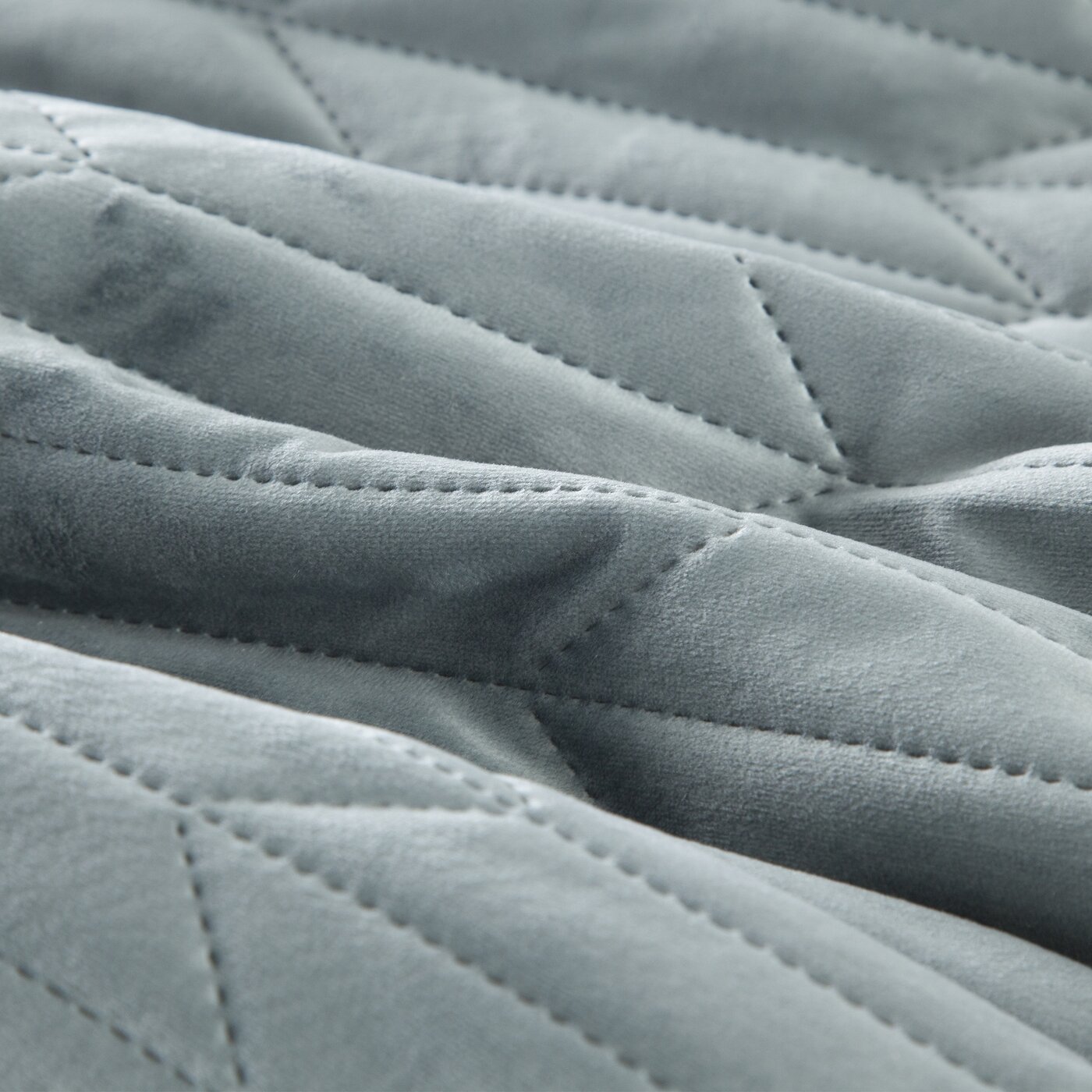 Miękka i przyjemna w dotyku narzuta. Wykonana z weluru pikowanego w dużą gęstą jodełkę. Pikowanie wykonane metodą bezszwowego zgrzewu Hot-press.