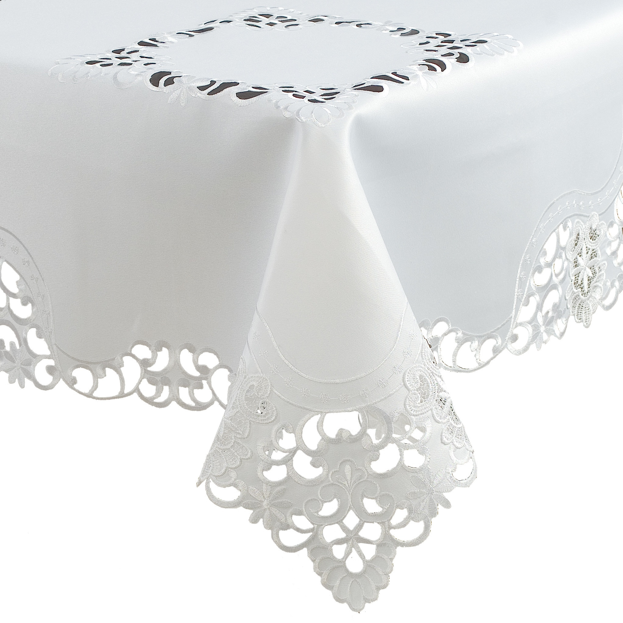 Obrus Haftowany 140x220cm, kolor biel.
