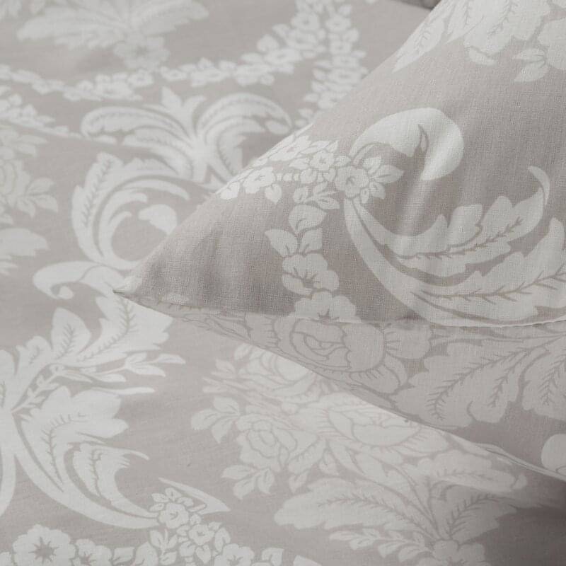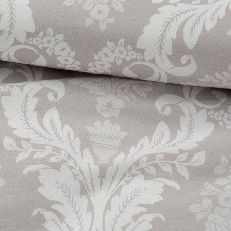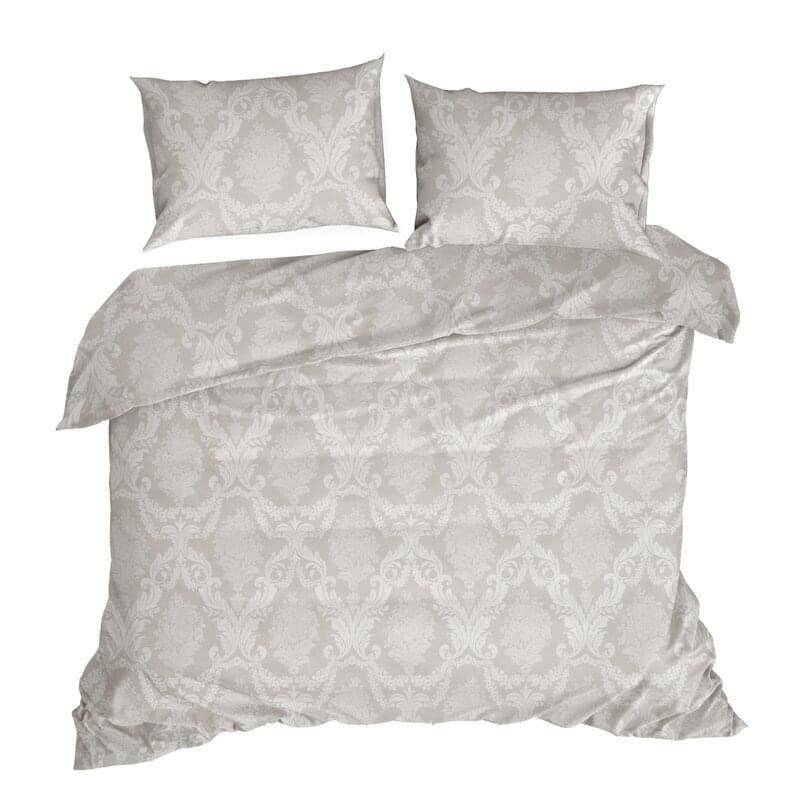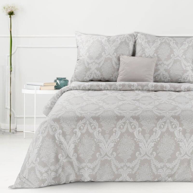 Pościel zdobiona nadrukiem, tonacja kolorystyczna szaro/popielatej.