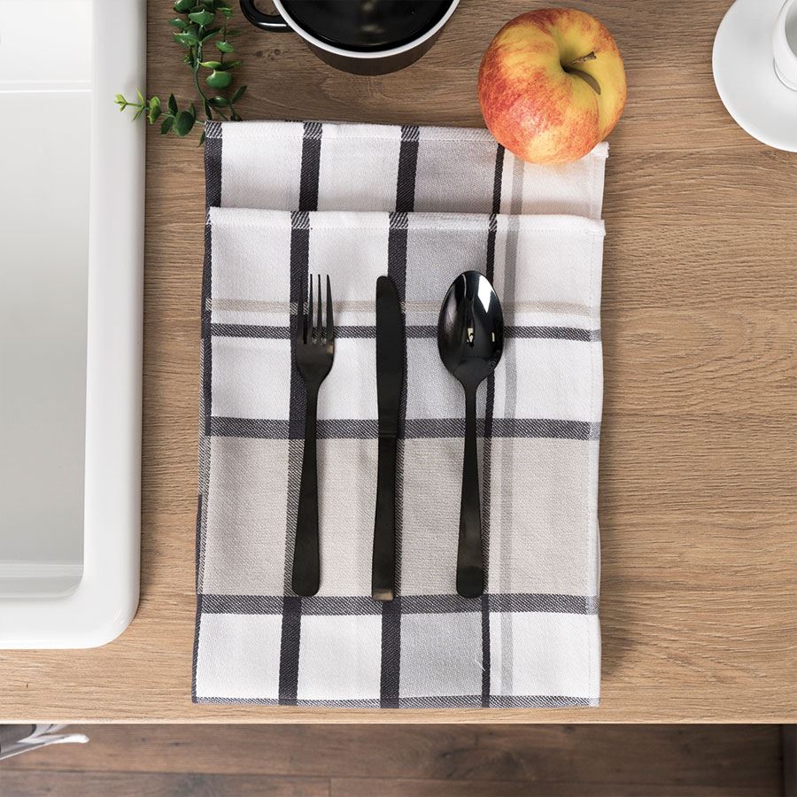 Ścierka kuchenna wzór Krata, kolor beżowo/szary.